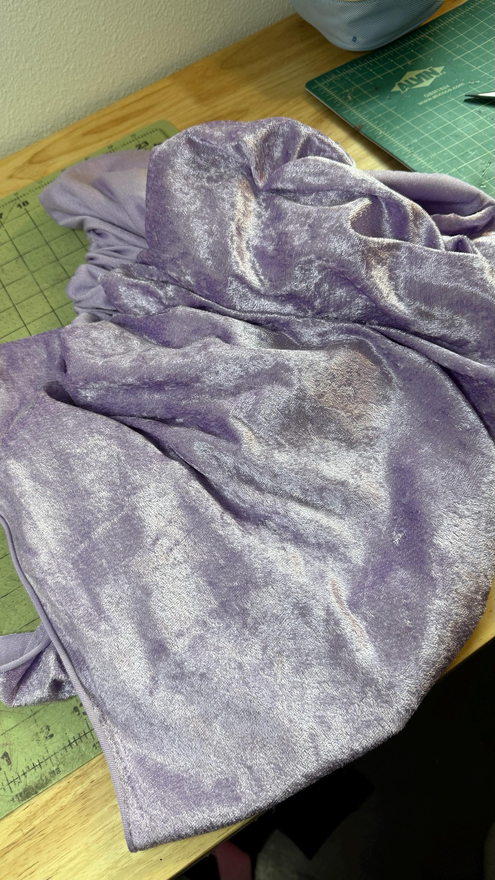 This gorgeous stretch velour fabric has a velvety pile and about 40% stretch across the grain for added comfort and ease. The panne nap adds shimmer and texture! It has a knit back and is excellent for creating stylish lounge wear dance costumes leotards tops dresses and children's apparel.
