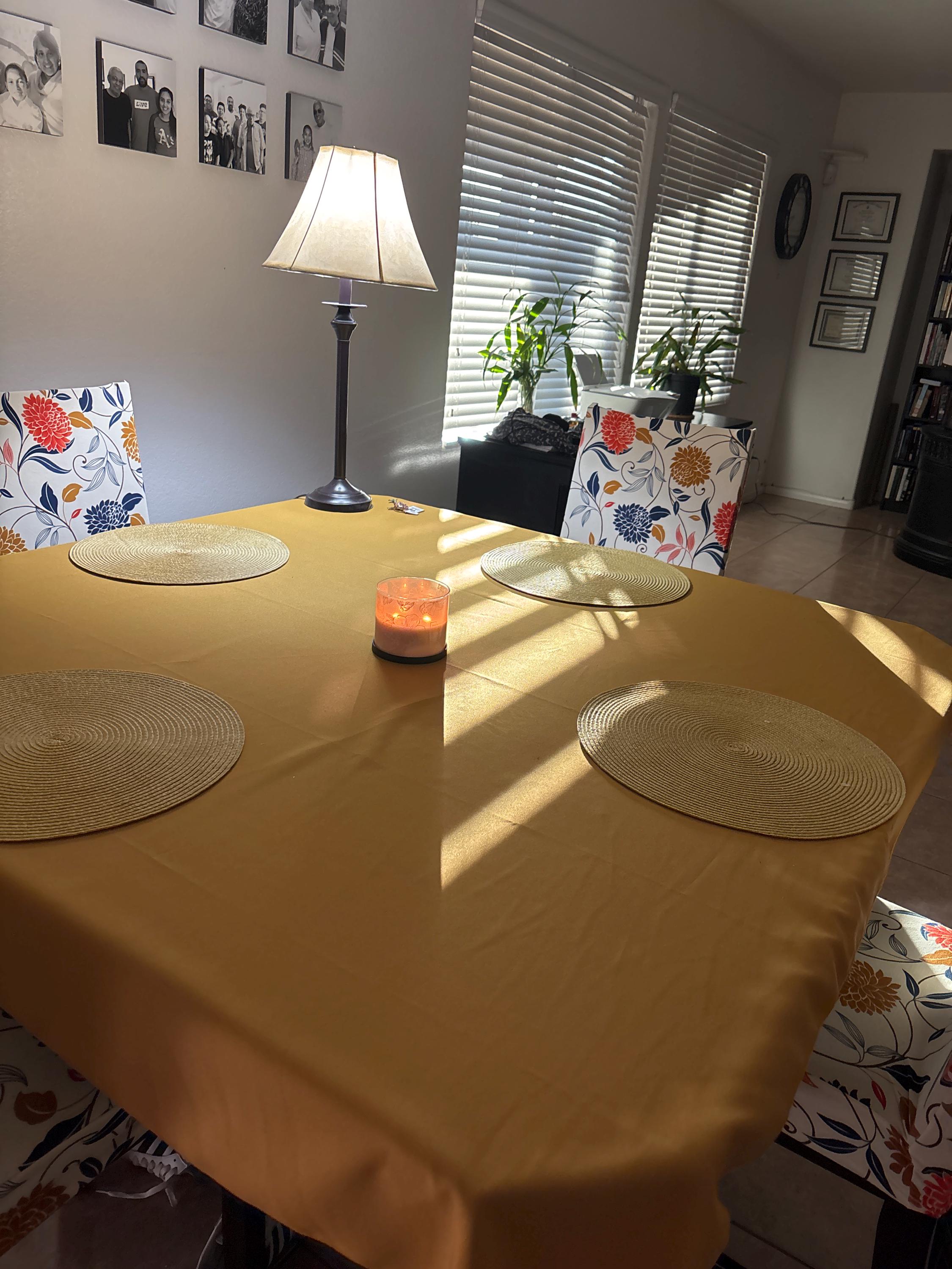 The tablecloth is seamless and the edges are finished with merow/surged for a clean look