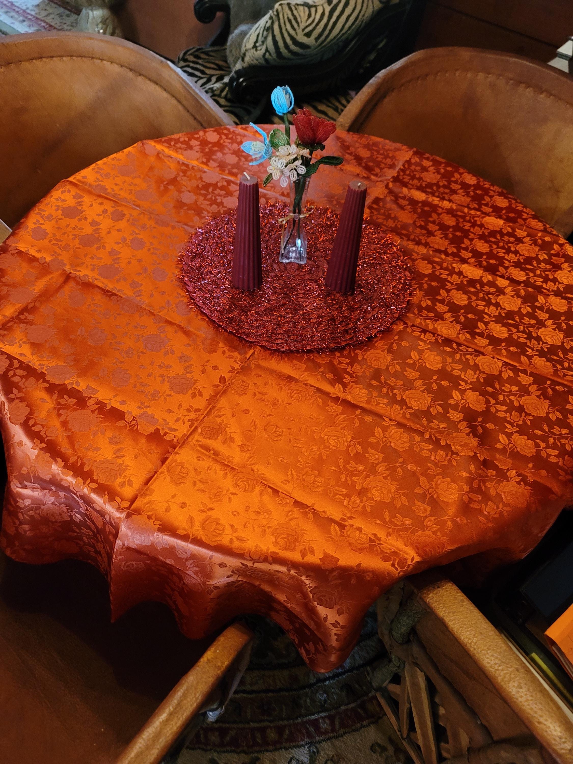 Burnt Orange Round Tablecloth Roses Jacquard Satin Overlay for Small Coffee Table Seamless.