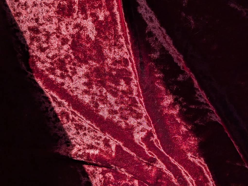 Elevate your creative projects with our Crushed Stretch Velvet Fabric, measuring 58 inches wide and sold by the yard. This luxurious velvet fabric features a rich, deep burgundy hue with a stunning crushed finish that adds texture and dimension to any design. Perfect for apparel, costumes, dancewear, or decorative accents, this fabric combines elegance with incredible flexibility. Its 4-way stretch ensures a comfortable fit and effortless movement, making it ideal for form-fitting garments, theatrical costumes, or statement accessories.